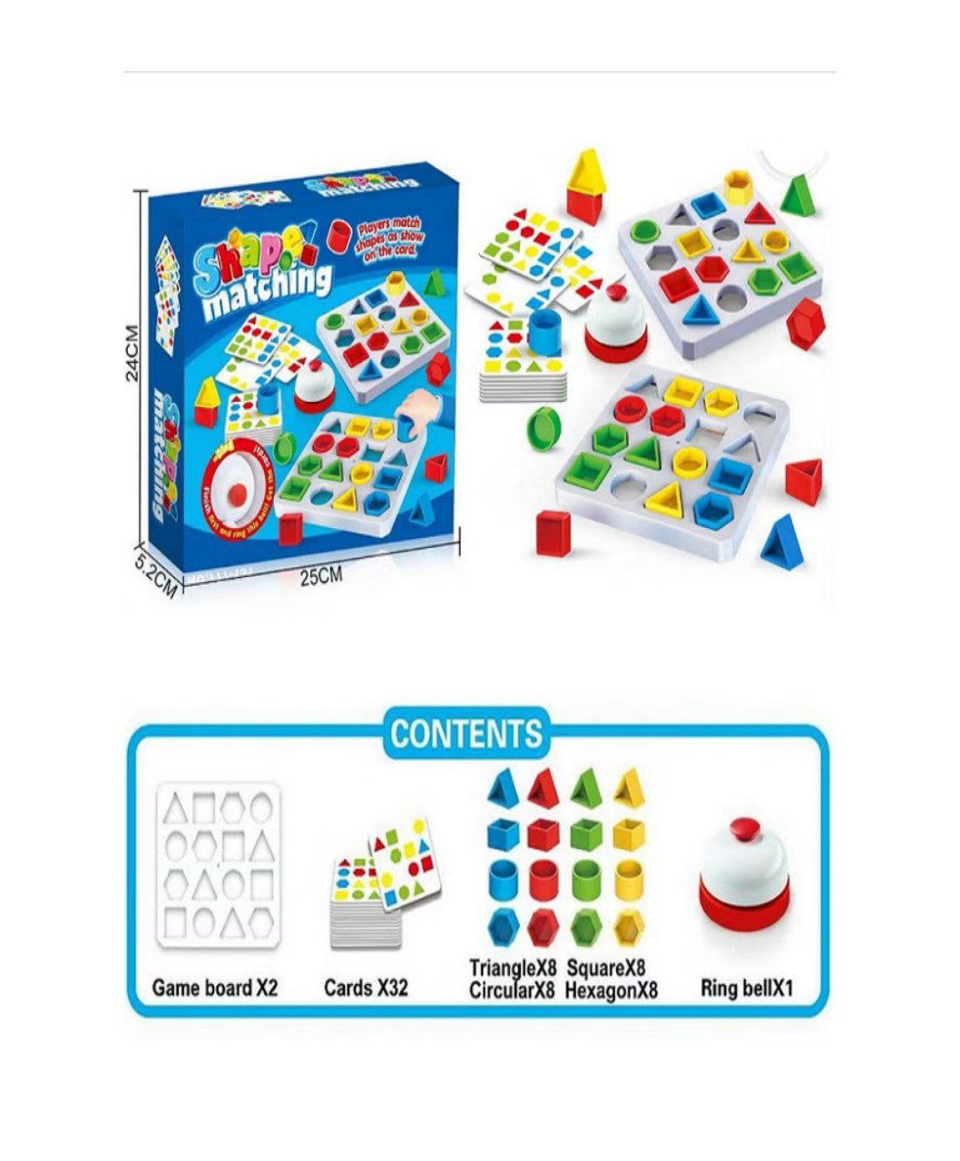 تعتمد اللعبة على تطابق الأشكال الصحيحة على اللوح، وعند نجاح الطفل في إتمام المهمة يقوم بالضغط على الجرس ليحصل على لحظة فوز وتحفيز تشجّعه على الاستمرار واللعب أكثر.