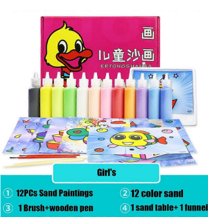 ألوان جذابة وكافية لاستكمال جميع الرسومات. يمكن إعادة استخدام الرمل المتبقي بسهولة بدون هدر بفضل أدوات التجميع المرفقة.